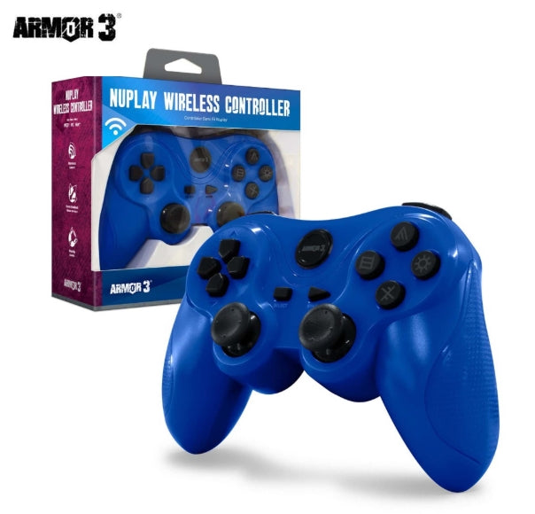 Armor3 NuPlay PS3® Wireless Game Controller - Armor3 For: PS3® MSRP: $29.99 Item#:M07401-BU Color:Blue UPC Code: 810007713267 The Armor3 “NuPlay” Wireless Controller for PS3® provides cable-free play up to 30 ft. from your console. It features dual non-slip analog sticks and textured handle pads. Pressure sensitive inputs include: 2 analog triggers, 4 digital buttons, and a d-pad. The NuPlay is compatible with all PS3® models, as well as PC and Mac® (when connected to included Mini charging cable).